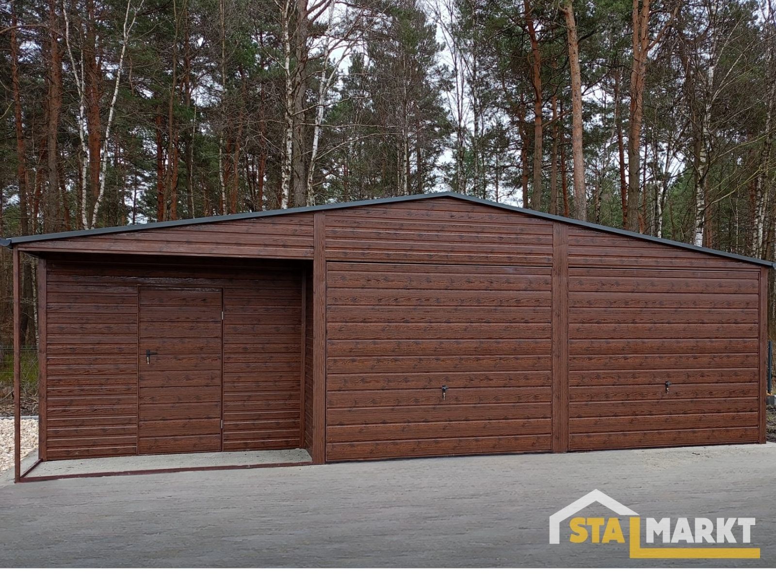 Nowoczesne wykończenie w kolorze drewna, solidna konstrukcja i wygodny układ z bramami oraz drzwiami bocznymi zapewniają komfort użytkowania i trwałość na lata. Idealne rozwiązanie dla tych, którzy chcą połączyć estetykę z funkcjonalnością.